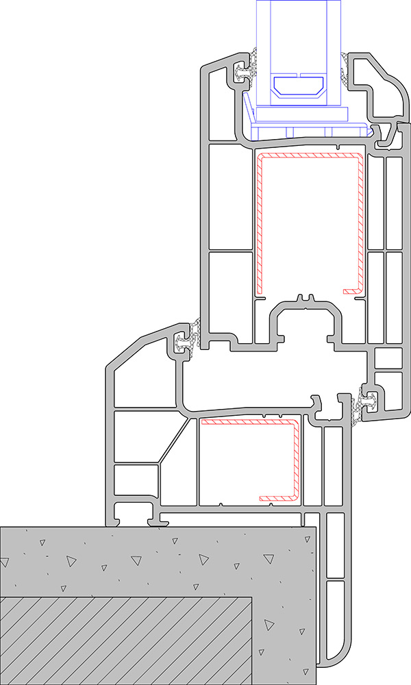 - inside view 105 mm (85 +20 ) door sash
