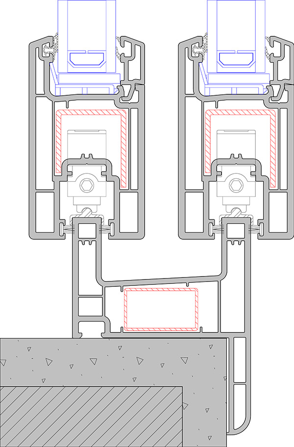 - 74 mm wide sliding frame with 3 chambers,